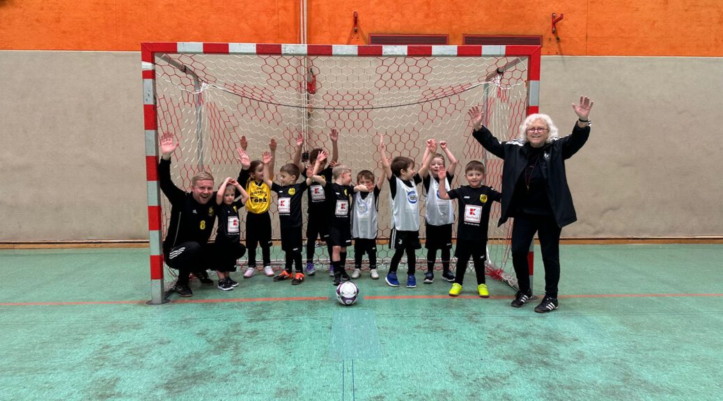 Als dann das Einlagespiel startete, bebte die Halle. Eltern, Großeltern, Geschwister, Fans – alle waren dabei und machten ordentlich Stimmung. Unsere Mini-Kicker liefen auf den Platz, als wären sie schon 100 Spiele erfahren. Und obwohl der Ball manchmal mehr eigene Ideen hatte als die Spieler, wurde um jeden Meter gekämpft, gelacht, gejubelt und gefeiert.