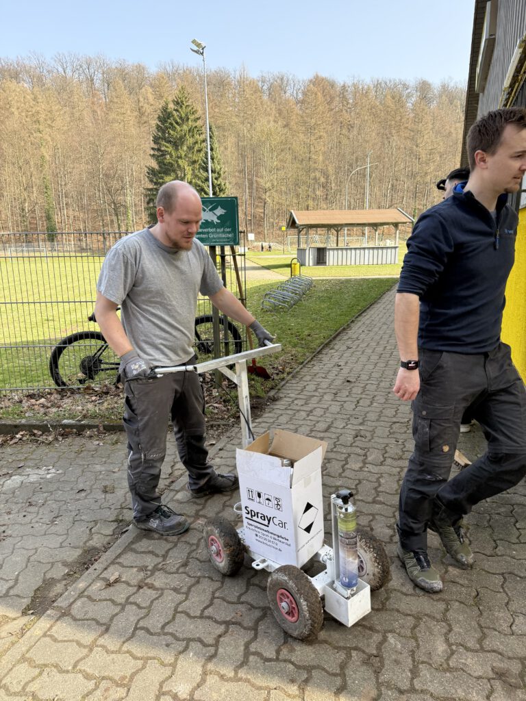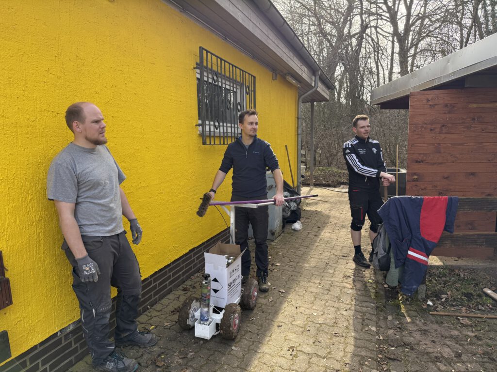 Außerdem machten sich einige Spieler daran den Platz nochmals zu walzen, neu zu vermessen und abzukreiden, damit dem Kampf um drei Punkte heute nichts mehr im Wege steht.