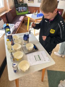 An die Theorie angeschlossen konnten die Kinder an verschiedenen Stationen aktiv Erfahrungen zum Thema Trinken und im speziellen Wasser sammeln.