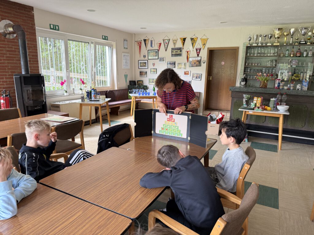 Am vergangenen Samstag, den 25.04.2026 war es soweit und im Clubhaus in den Sundern fand diese 2-stündige Veranstaltung statt. Zunächst stellte sich Ernährungsberaterin Maike vor und brachte den Kindern anhand eines Vergleichs mit dem Auto nahe was der Körper benötigt um gut zu funktioniere. Damit die Kinder auf dem Sportplatz kein „Trabbi“ sondern ein Sportwagen sein können. Hierbei durfte die Ernährungpyramide natürlich auch nicht fehlen.