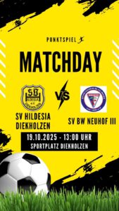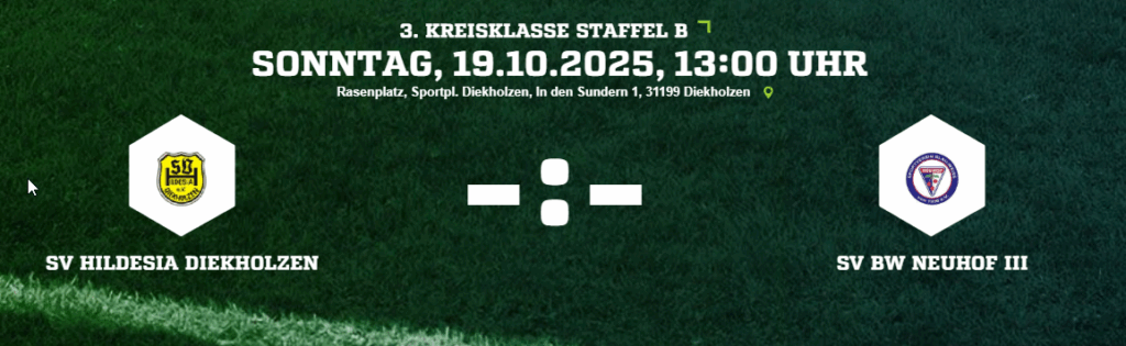 Sollten die Wanderschuhe gegen 13:00 Uhr geschnürt werden, dann sollte man zusehen die eine Route durch die Sundern zu wählen, denn dort spielt unsere Herrenmannschaft gegen die 3. Mannschaft vom SV Blau Weiß Neuhof. Diese sind aktuell mit sieben Punkten Rückstand auf Platz vier der Tabelle zu finden.