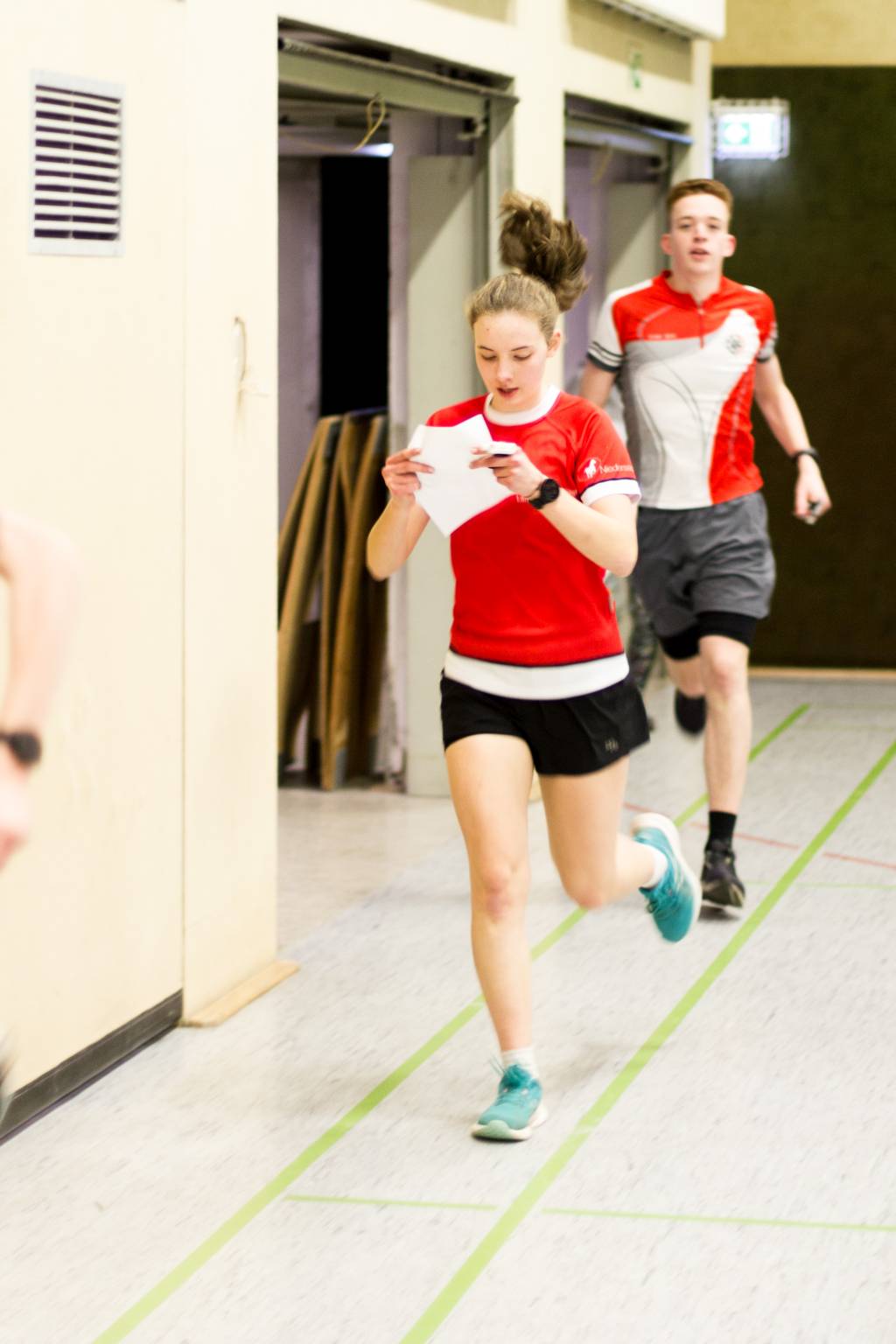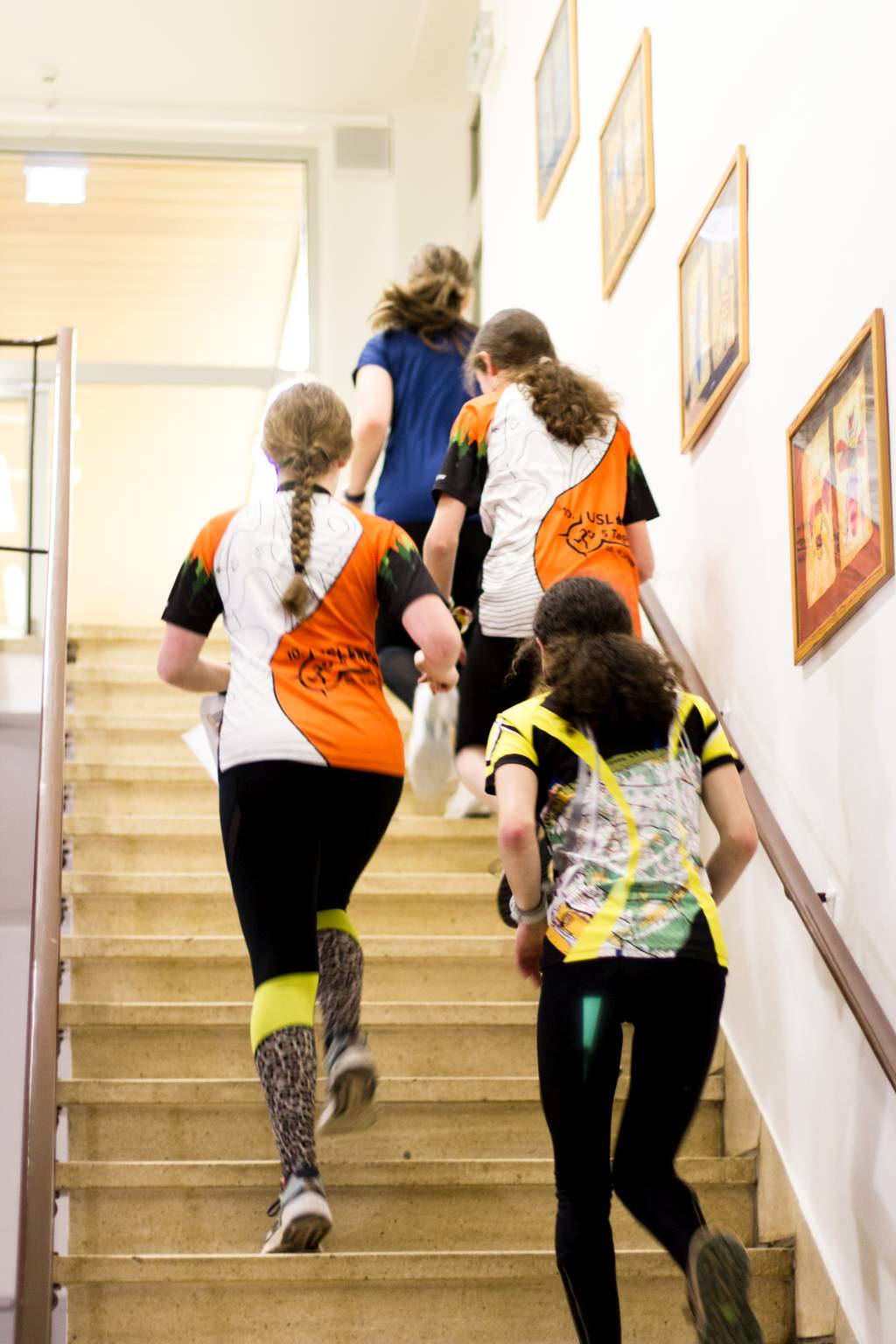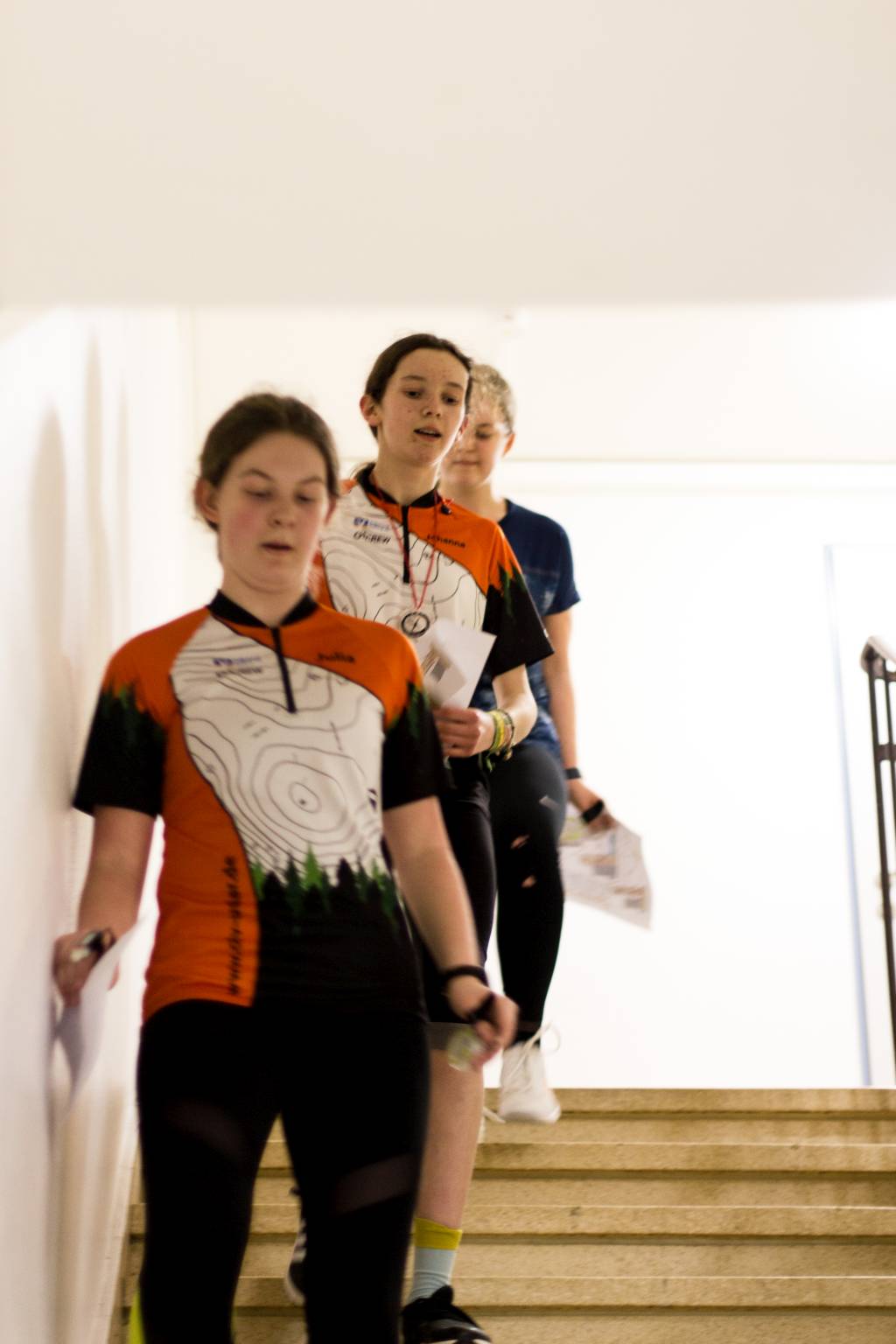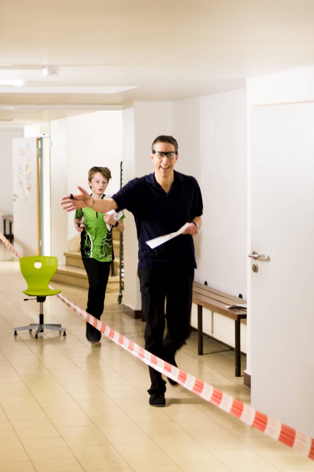Geplant waren zwei anspruchsvolle Routen über 1 km und 1,8 km. Doch die Distanz allein war nicht die Schwierigkeit: Das dreidimensionale Denken war gefragt! Die Postensuche führte die Teilnehmer quer durch das gesamte Schulgebäude: