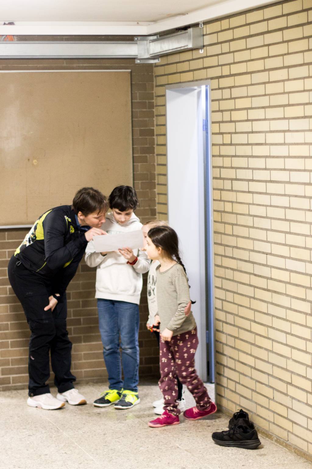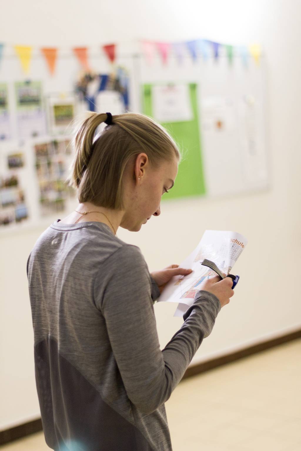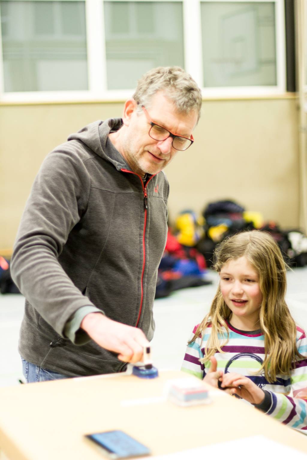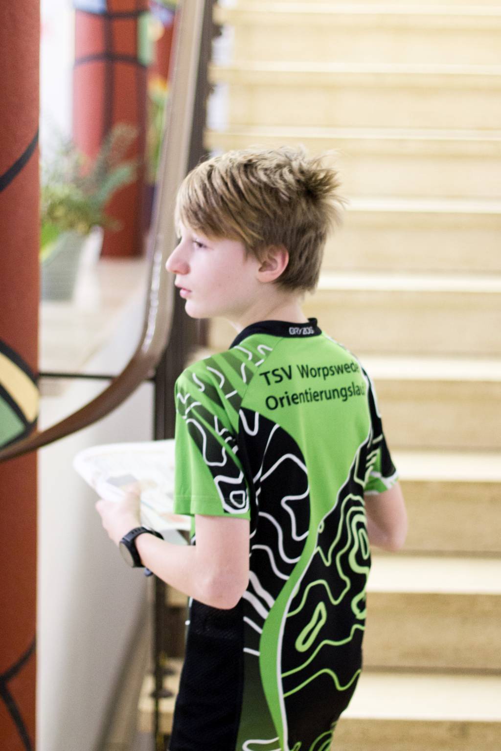 Geplant waren zwei anspruchsvolle Routen über 1 km und 1,8 km. Doch die Distanz allein war nicht die Schwierigkeit: Das dreidimensionale Denken war gefragt! Die Postensuche führte die Teilnehmer quer durch das gesamte Schulgebäude: