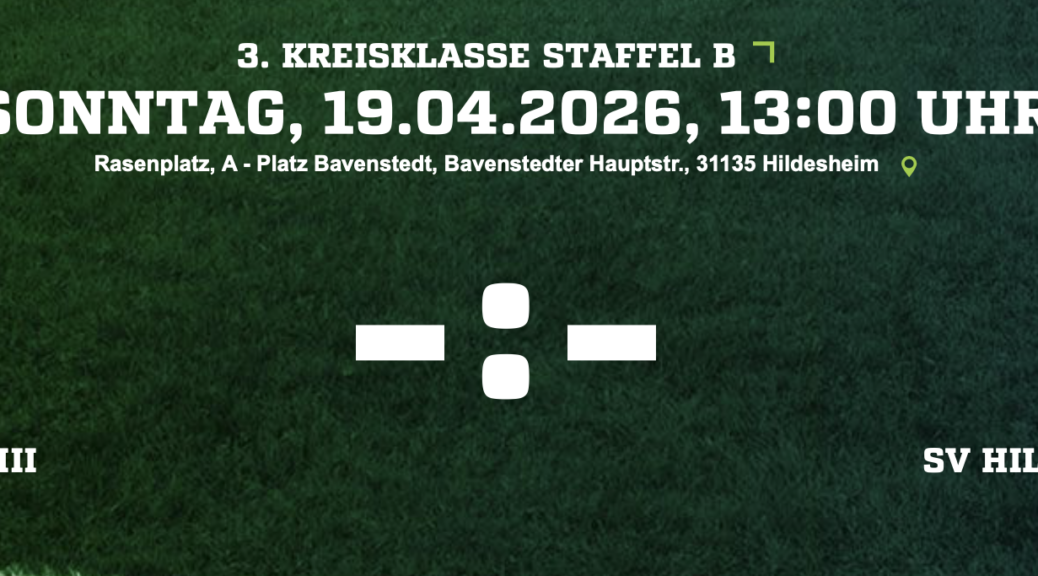 Morgen am Sonntag, den 19.04.2026 findet um 13:00 Uhr in Bavenstedt das Spitzenspiel der 3. Kreisklasse statt. Der Tabellenführer aus Bavenstedt empfängt unseren SV Hildesia.